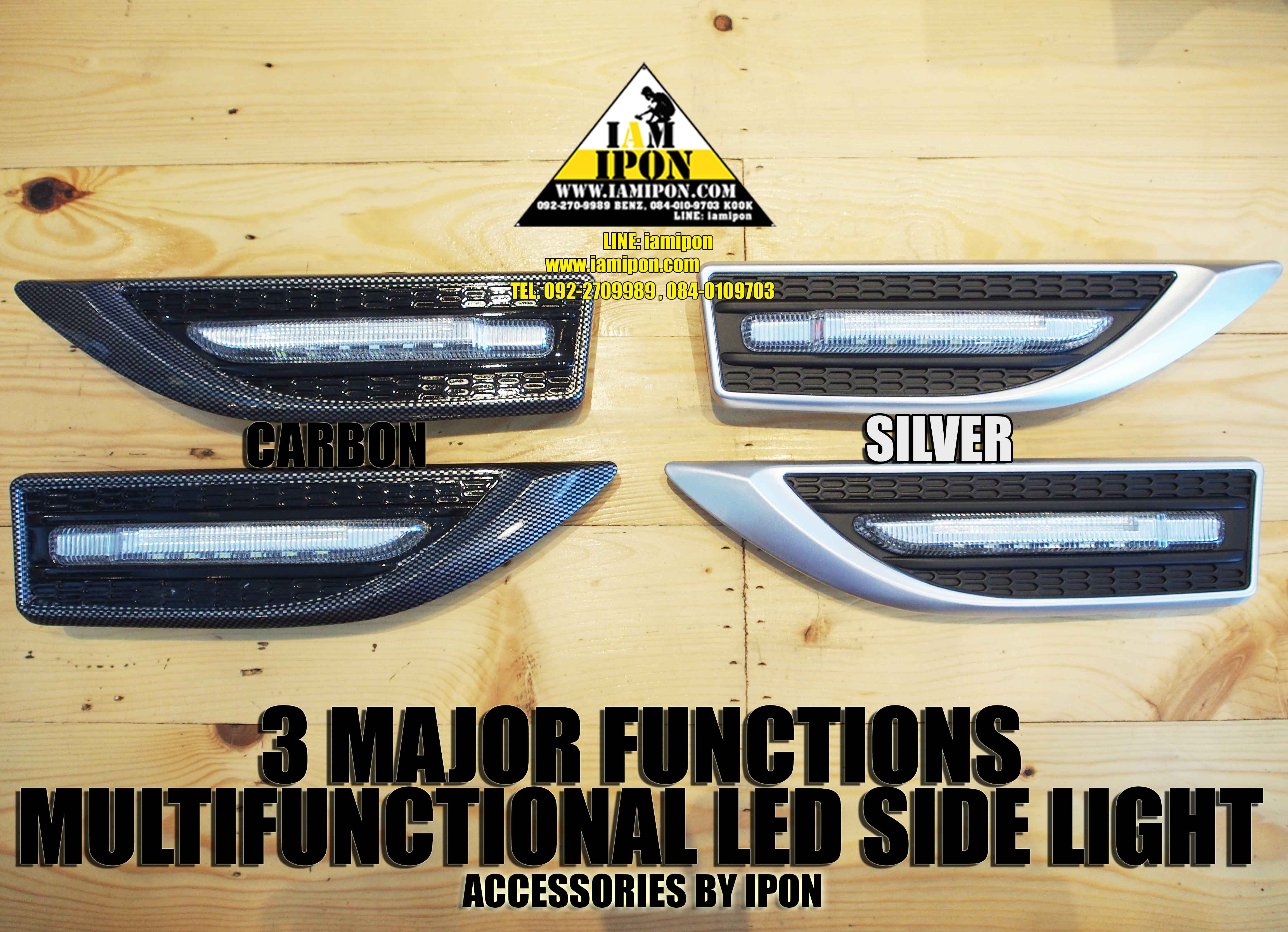 MULTIFUNCTIONAL LED SIDE LIGHT 3 MAJOR FUNCTIONS CARBON & SILVER ไฟแก้ม LED 3 สเต็ปเทพ